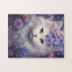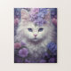 Cute White Cat with Flowers, Fantasy Art Jigsaw Puzzle