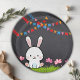 Cute White Chalkboard Bunny Baby Shower Paper Plate