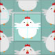 Cute White Chicken on Pale Blue Pattern Fabric