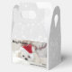 Favour box with an adorable photo of a cute white doggy wearing a red christmas hat.