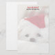 Stationery paper with an adorable photo of a cute white doggy wearing a red christmas hat.