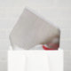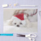 Tissue paper with an adorable photo of a cute white doggy wearing a red christmas hat.
