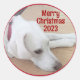 Cute White Dog Wearing Red Collar Christmas Classic Round Sticker