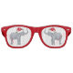 Adorable white elephant Christmas party sunglasses featuring a funny elephant in green and red wearing a Santa hat. Whimsical animal holiday shades.