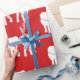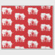 White Elephant Gift Exchange Christmas Game Gift Wrapping Paper Red and White, White Elephants Couple Pattern on Bright Christmas Red Background