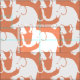 This beautiful fabric features diagonal rows of overlapping little white elephants with playfully lifted trunks and feet against a salmon ground.