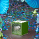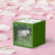 This awesome favour box features a photograph of a cute fluffy sheep. The sheep is surrounded by wild flowers and long grass and is eating some leaves. It has a thick white coat of wool and a cute black nose. There is customisable text on the top of the box so you can personalise it.