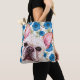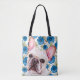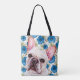 Cute White French Bulldog on Blue Flower Pattern Tote Bag