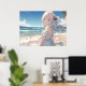 Cute white haired anime girl on the beach poster