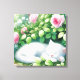 Cute White Kitten Napping Under Rosebush Canvas Print