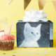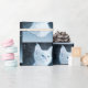 Wrapping paper with an adorable photograph of a white short-haired kitten with bright blue eyes. Staring off into the distance.