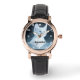 A watch with an adorable photograph of a white short-haired kitten with bright blue eyes. Staring off into the distance.