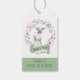 Cute baby lamb thank you gift tags which you can personalise for any occasion. The design has an adorable white lamb, framed with a wreath of sweet folk art flowers and a spring green banner. It is lettered with "Thank you for coming" and the template is set up for you to include your personalised event, such as a baby shower or birthday party.