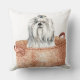 CUTE WHITE MALTESE DOG IN BROWN BASKET CUSHION