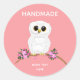 Cute White Owl on Light Pink Handmade Classic Round Sticker
