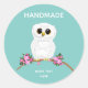 Cute White Owl on Light Teal Handmade Classic Round Sticker