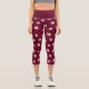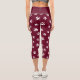 Cute White Paw Prints Pattern Burgundy Capri Leggings