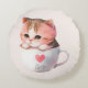 Cute White-Pink Cat in a Tea Cup (2) Round Cushion