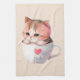Cute White-Pink Cat in a Tea Cup (2) Tea Towel