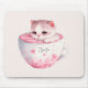 Cute White-Pink Cat in a Tea Cup (3) Mouse Mat