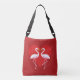 Cute White Pink Flamingos with Red Heart Crossbody Bag