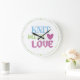 Cute white pink knit with love large clock