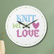 Cosy up your crafting space with this charming wall clock featuring the phrase “Knit with Love” in a pink yarn-style stitch effect on a bold black background. Perfect for knitters, crocheters, or anyone who loves handmade creations, this clock adds a warm, personal touch to any studio, living room, or craft corner. Its modern contrast and textured design make it both eye-catching and heartfelt — a perfect gift for yarn lovers!