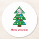 Cute White Puppy Dog Colourful Christmas Tree Xmas Round Paper Coaster