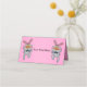 This folded standing place card for your parties, events, and weddings is vibrant pink with a cute white bunny rabbit giving a thumbs up sign and wearing a black bow tie. Customise the name and table number area and text on the back with the templates.