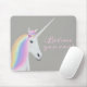 Cute White Rainbow Unicorn Magical Pink Grey Mouse Mat