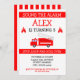 Cute White & Red Vector Kids Firetruck Birthday Invitation