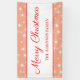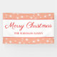 This Merry Christmas design has a blush pink and white snowflake pattern, with red font, and family name text for you to change.