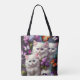 Cute White Three Cuddly Cat Photo with Butterfly Tote Bag