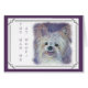 Cute white Yorkie Mix watercolor painted with soft multi-pastel colors. Perky Face and devilish smile with a mauve background makes this small dog breed loveable – originally painted by the designer www.fancifulwatercolors.ca – contact me if you want your dog painted
