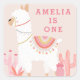 Cute Whole Llama Fun Pink 1st Birthday Favour Square Sticker