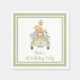 This first birthday party napkin features a cute illustration of baby animals (lion, zebra, elephant, monkey and giraffe) piled into a safari vehicle and your one-year old's name and "1st Birthday Party" in coordinating army green script. You can the text on the vehicle (set to he or she is a wild one) and the party date on the license plate, or leave blank. Perfect for drive by birthday parties.