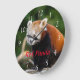 Cute Wild Red Panda Nature Photo Red Text Large Clock