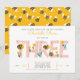 The back of the card is equally delightful, adorned with an all-over yellow bee pattern that perfectly complements the theme. This combination of florals and bees creates a joyful and cohesive design, making the invitation a keepsake that guests will cherish. Perfect for a little girl's third birthday, this invitation sets the tone for a sweet and memorable celebration.