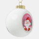 A white ball ornament with a cute winking Santa Claus on a pink background . Customise with your own text or leave it as it is .