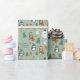 This cute wrapping paper features winter animals, wearing hats and scarves - you'll find polar bears, penguins, foxes, squirrels, and rabbits. Snowflakes, candy canes, Christmas trees, and gingerbread man cookies add a fun, whimsical touch. It contains text templates for a holiday greeting and name. Easy to personalise for unique gift giving this holiday season! The background colour is a light mint green, but it can be customised to any colour you'd like.