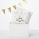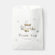 Beautiful baby shower favor bag with cute highland cows, a snow covered log and snowflakes. Perfect for a winter baby shower. The words can be changed to suit your own details or requirements