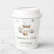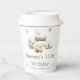 Rustic birthday paper cup with cute highland cows, a snow covered log and snowflakes. Perfect for a winter baby shower. The words can be changed to suit your own details or requirements