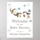 Rustic baby shower poster with cute arctic whales and snowflakes. Perfect for a winter baby shower. The words can be changed to suit your own details or requirements