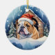 Cute Winter Christmas Bulldog Ceramic Ornament