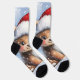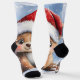 Cute Winter Christmas Santa Bear Cub Watercolor Socks