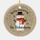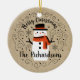 A cute Christmas snowman with the words Merry Christmas decorates this ornament. Personalise it with your family name. A fun accent for the Christmas holiday season. Designed for you by Blackberry Boulevard.