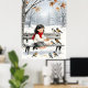 Cute Winter Girl Feeding Birds Nursery Wall Art