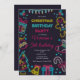 Cute Winter Neon Christmas Birthday Party Invitation