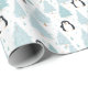 A Cute minimal penguin and Christmas tree design in blue . A great gender neutral festive holiday gift wrap,