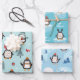 Cute Winter Penguins in Three Patterns Wrapping Paper Sheet